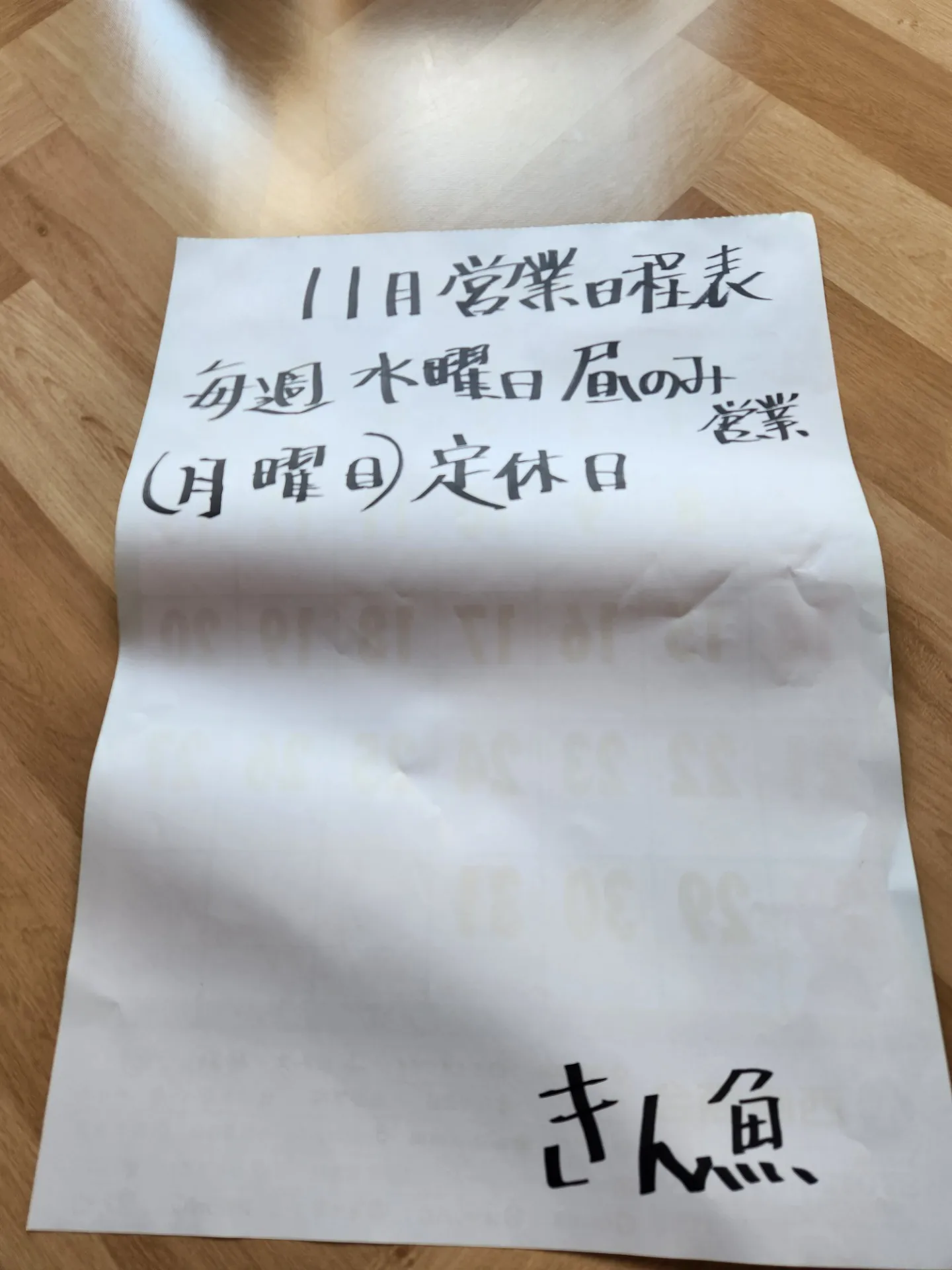 11月の営業日程表です